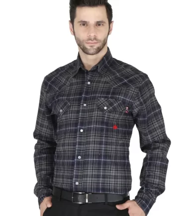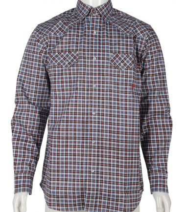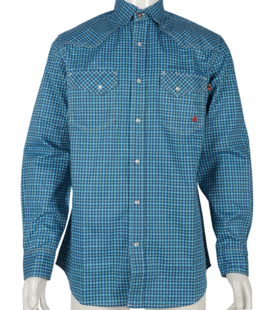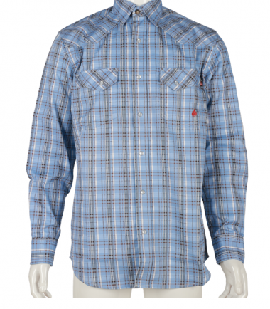 Safe hard wearing fire resistant shirt. White Pearl Snaps on pocket, placket and cuff closure
