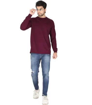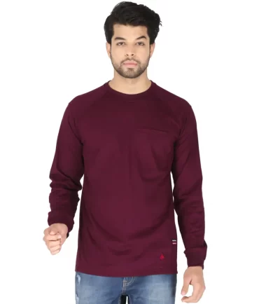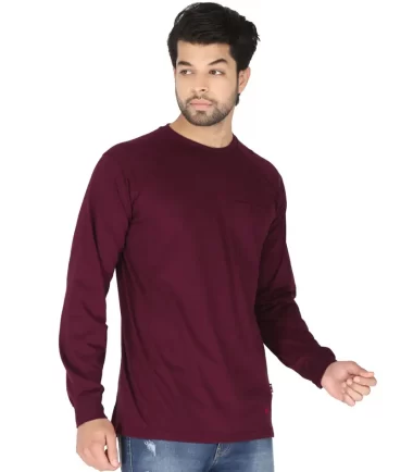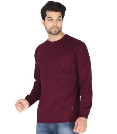 Forge Fr Men’s Burgundy Crew Neck Light Weight Long Sleeve T-shirt