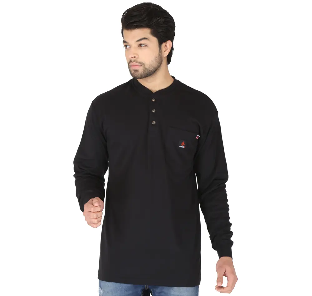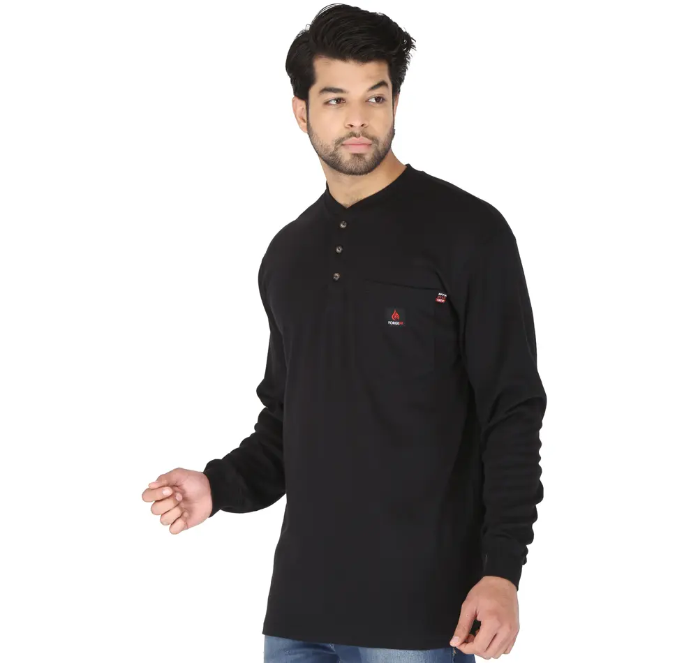 Forge Fr Men’s Black Henley Neck Long Sleeve T-shirt