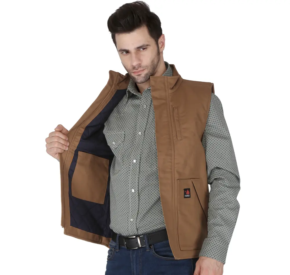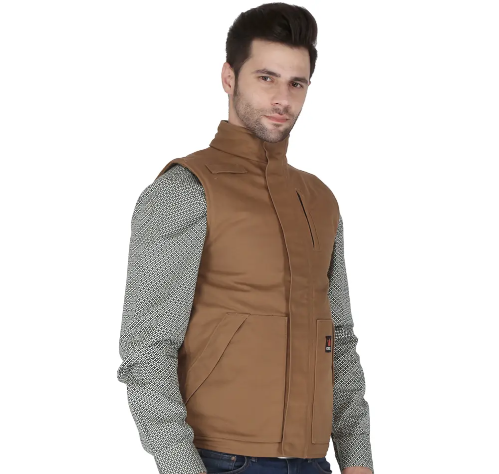 Tough 10 oz. tough  canvas duck unisex vest with warm lining, weather resistant. fire resistant