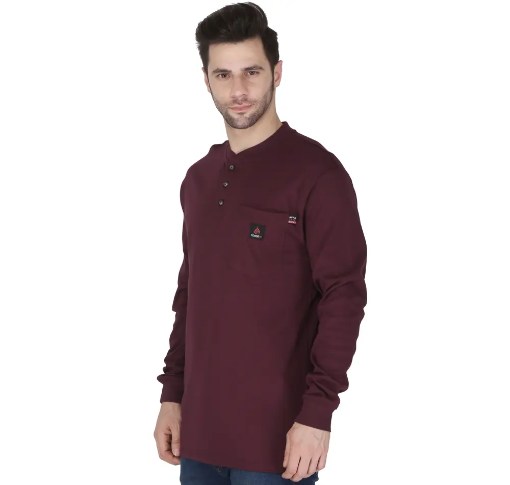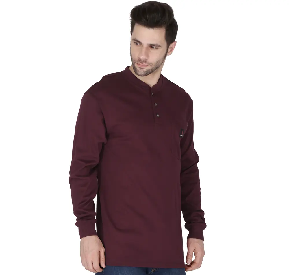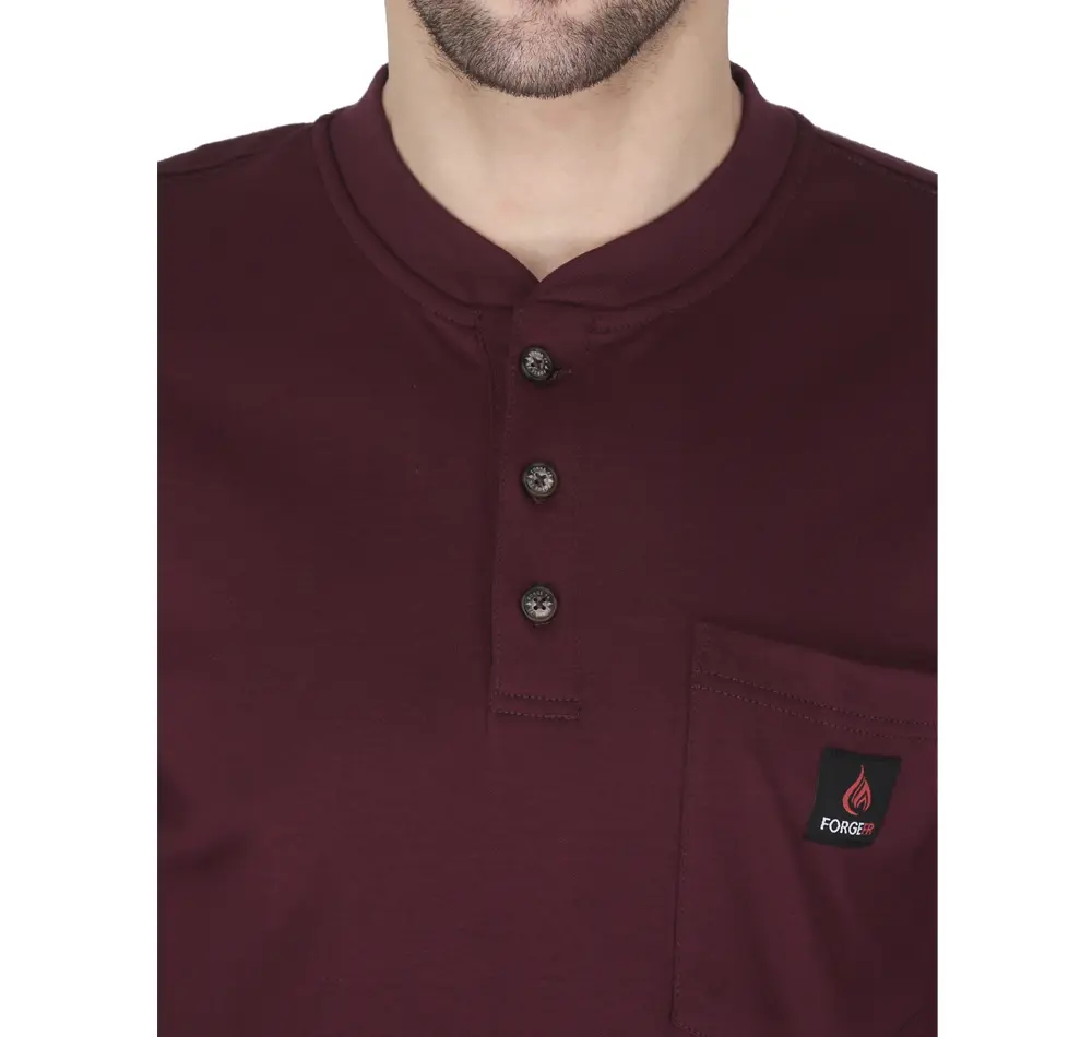 Forge Fr Men’s Burgundy Henley Neck Long Sleeve T-shirt