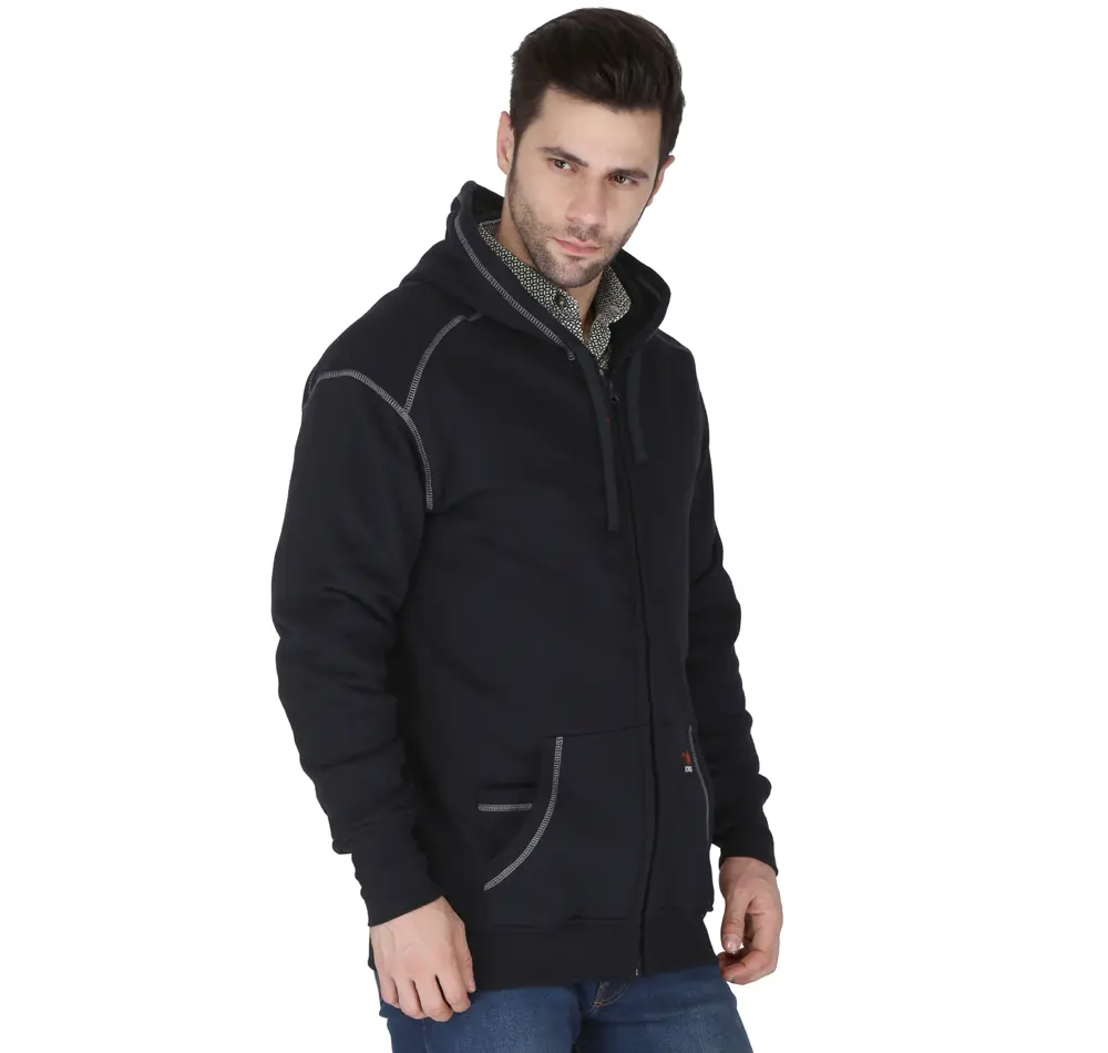Men’s Fire Resistant Navy Hoodie w/ Zipper: warm comfortable FR protection.