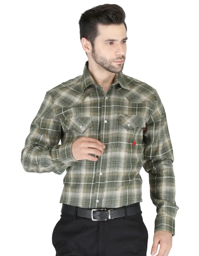 Forge Fr Men’s Sage Green Plaid Printed Long Sleeve Shirt