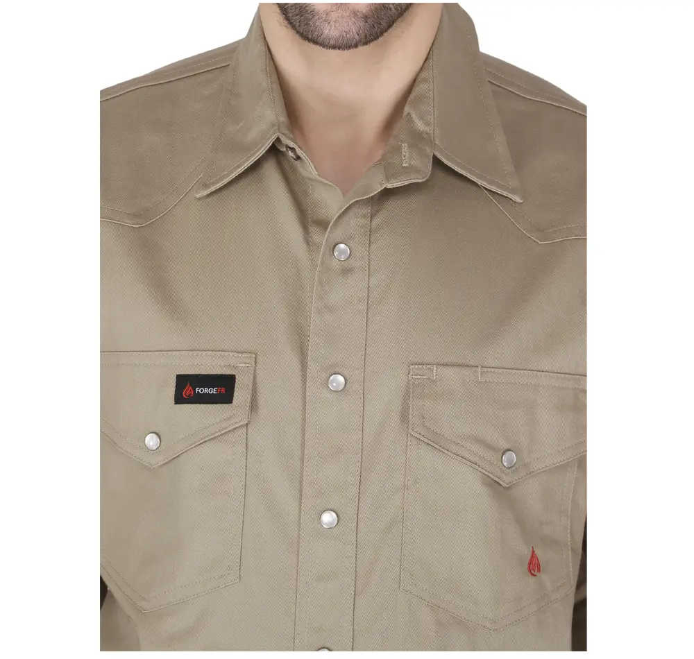 Forge FR Men’s Solid Khaki Long Sleeve Shirt